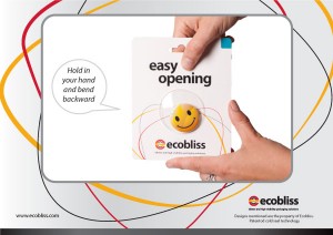 In 2012 Ecobliss entered the competition with three entries into the WorldStar completion in three different categories: ‘Electronics’, ‘Household’ and ’Other”. All three entries (100% score!!) received an Award from the WPO jury. This year, Ecobliss has managed to convince the jury of the “Worldstar Competition” once more, this time with the “Easy Opening” package.